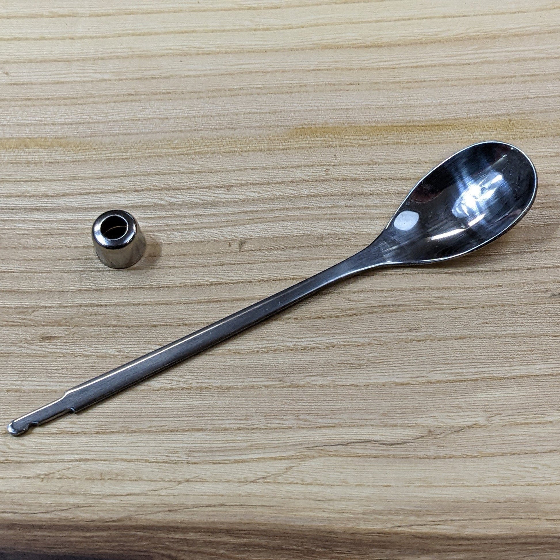 A very handy small spoon - Cutlery Blank. Length from tip of fork to shaft is approx. 102mm, approx. length of shaft 12mm - Total approx. length 114mm / 11.5cm / 4.6 inches. Comes with a ferrule as shown. Perfect for any crafts-person wanting to make unique items